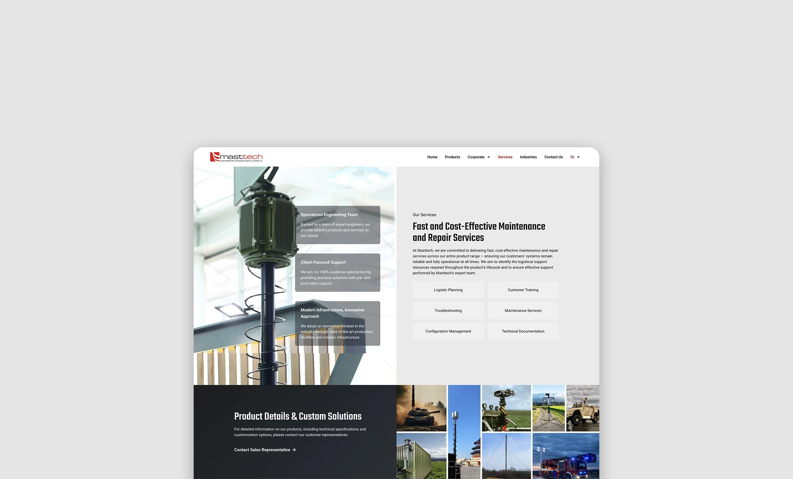 The completed website strengthens Masttech’s readiness for global visitors by turning its online presence into an active, product-driven hub. Clear hierarchy, refreshed visuals, and focused messaging help visitors see the full scope of Masttech’s systems while maintaining the discretion required in the defense sector. The structured catalog experience supports both information gathering and sales conversations, giving the company a digital platform that reflects its scale, innovation, and reliability.